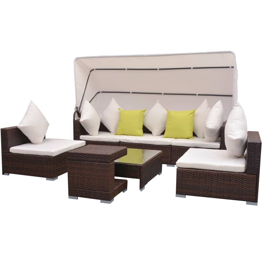 vidaXL 8-delige Loungeset met kussens poly rattan acacia bruin
