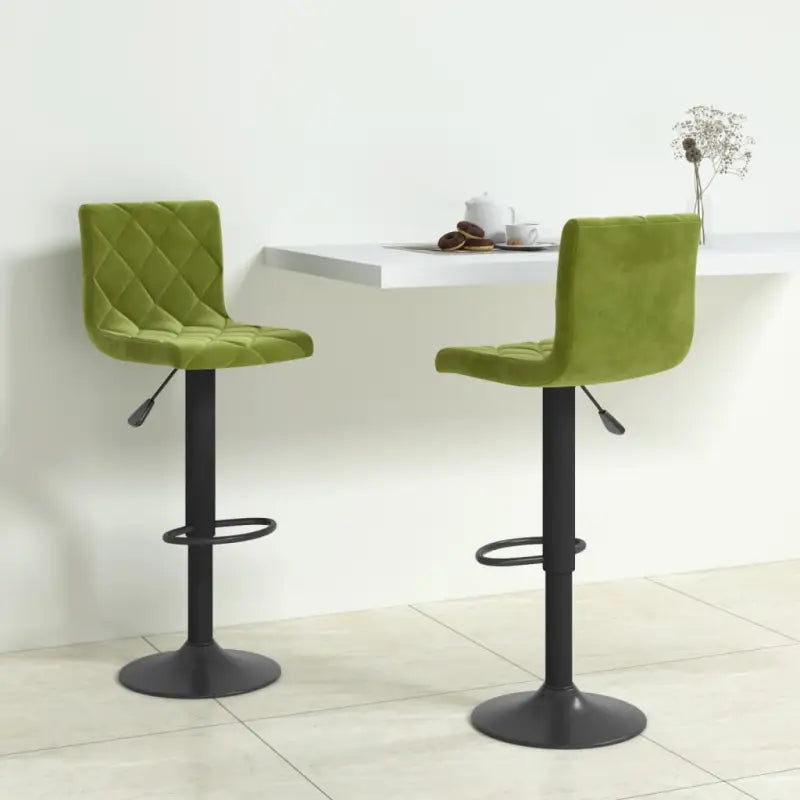 Deze barstoelen zijn bekleed met zacht fluweel voor optimaal zitcomfort. Het verchroomd stalen frame zorgt voor veel stevigheid en stabiliteit, terwijl de ingebouwde voetensteun voor extra zitplezier zorgt. Dankzij het gasveermechanisme kunnen deze draaiende barkrukken in hoogte versteld worden en zijn ze een perfecte aanvulling op elke bar of eethoek. Bovendien kunnen ze 360 graden draaien voor grotere flexibiliteit.