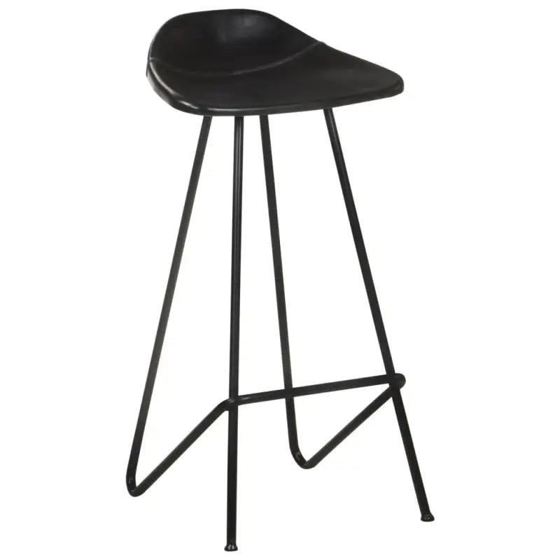 De echt geitenleren zittingen voelen zacht aan en bieden een comfortabele zitervaring. Het gepoedercoat ijzeren frame draagt bij aan de stevigheid. De barstoelen zijn gemakkelijk te verplaatsen.