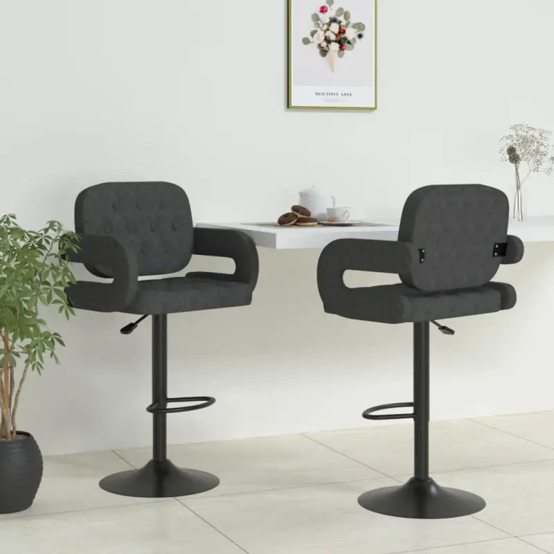 Deze barstoelen zijn bekleed met sterke stof en bieden optimaal zitcomfort. De gepoedercoat stalen basis zorgt voor stevigheid en de ingebouwde voetensteun draagt bij aan het zitplezier. Met het gasveermechanisme kan je de hoogte van de barkrukken aanpassen. Deze meubelen zijn de perfecte aanvulling op elke bar of eethoek!