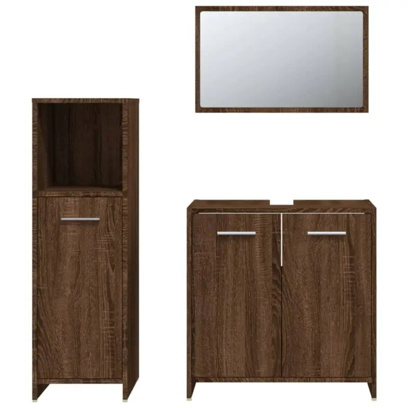 Deze 3-delige badkamermeubelset heeft veel opbergruimte en is een chique en tijdloze aanvulling op elke badkamer of wasruimte.