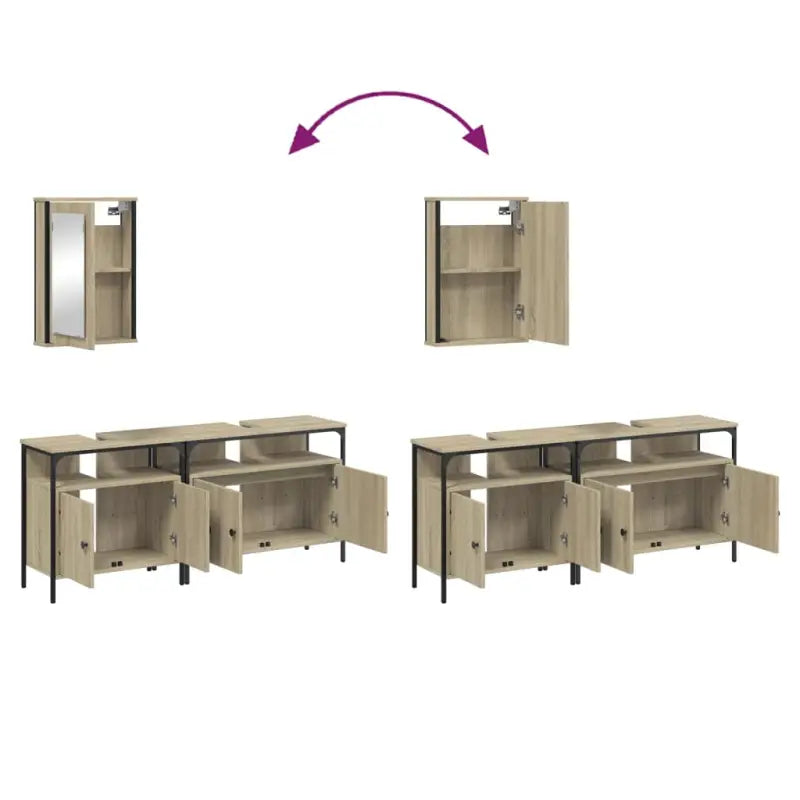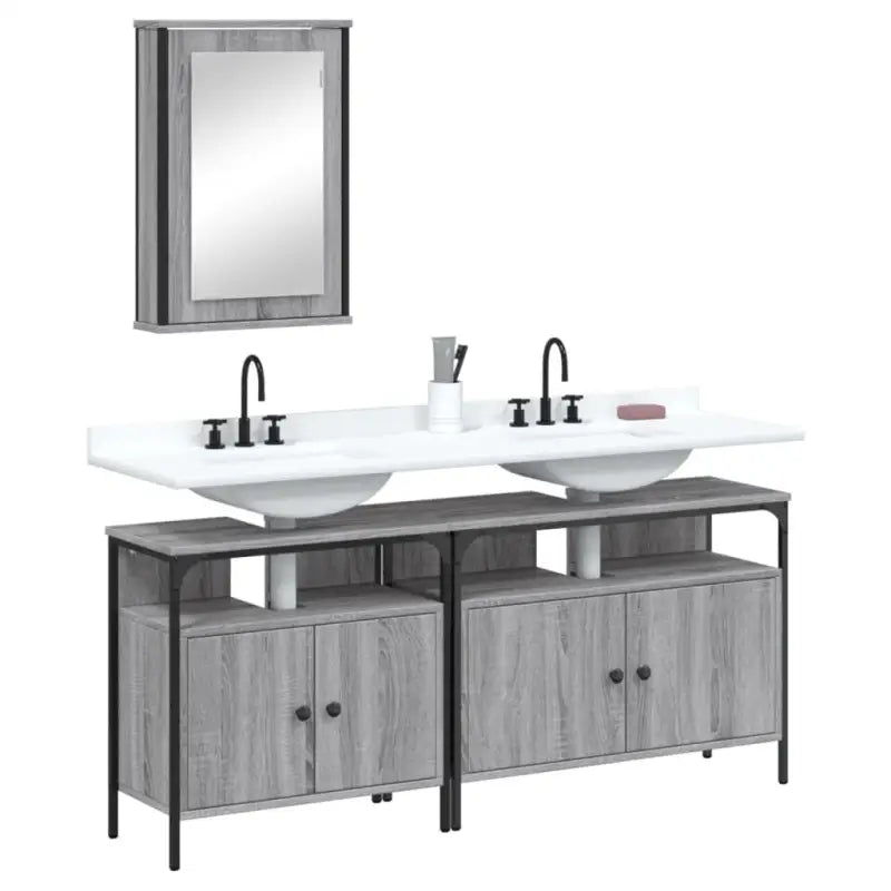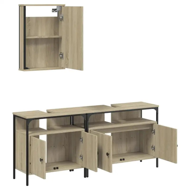 Badkamermeubelset in Sonoma Eiken met bewerkt hout en veel opbergruimte