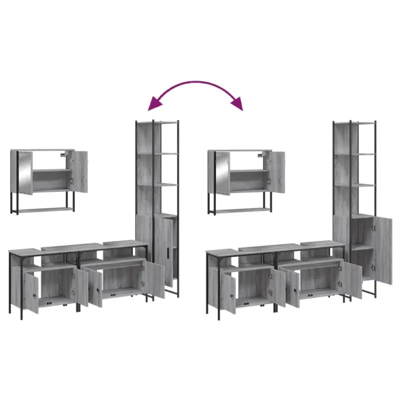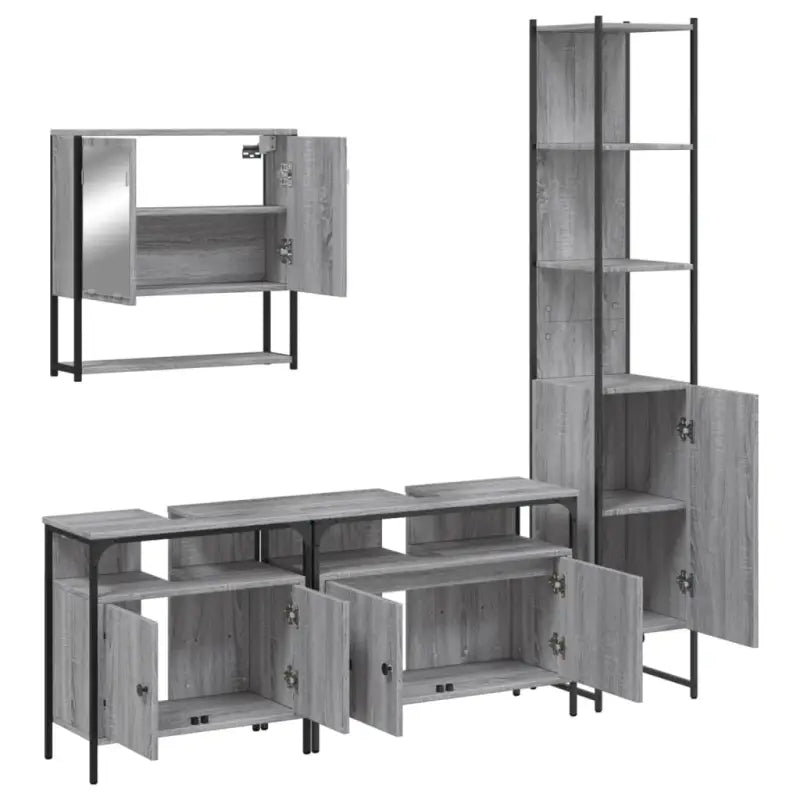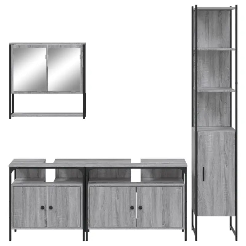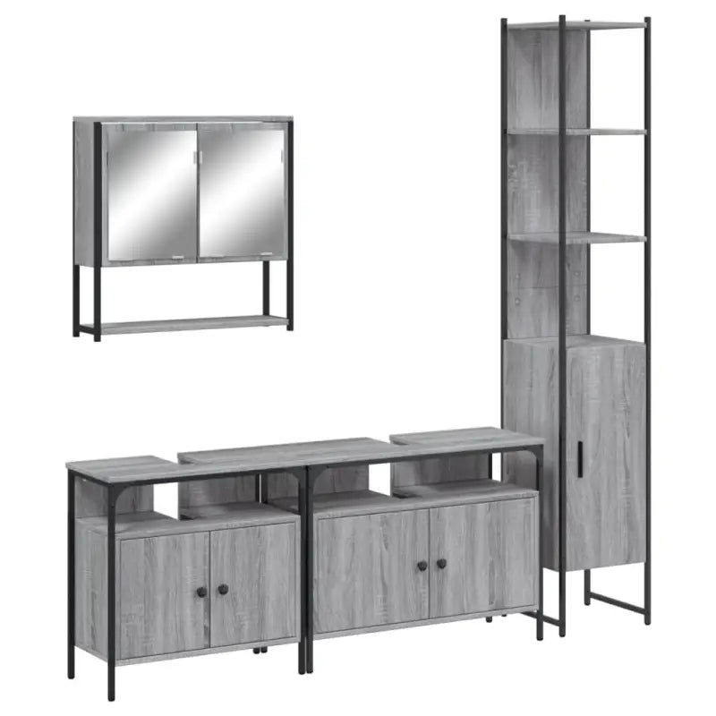 Badkamermeubelset van bewerkt hout in Grijs Sonoma Eiken stijl