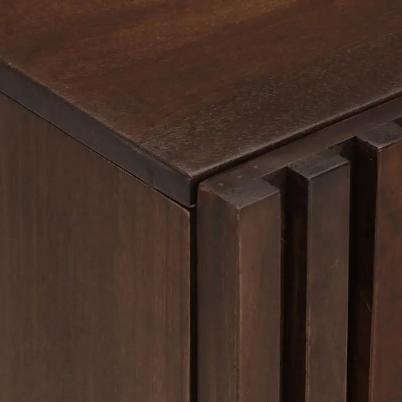 - Massief mangohout: massief mangohout is een sterk, tropisch hardhout waar stevige meubelen van gemaakt worden. De prachtige houtnerven maken elk meubelstuk net even anders dan de rest. De kast is gemaakt van massief mangohout en is duurzaam en stabiel.