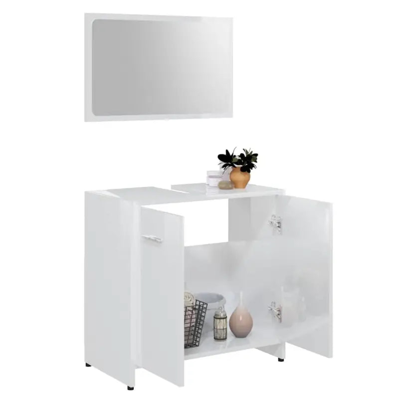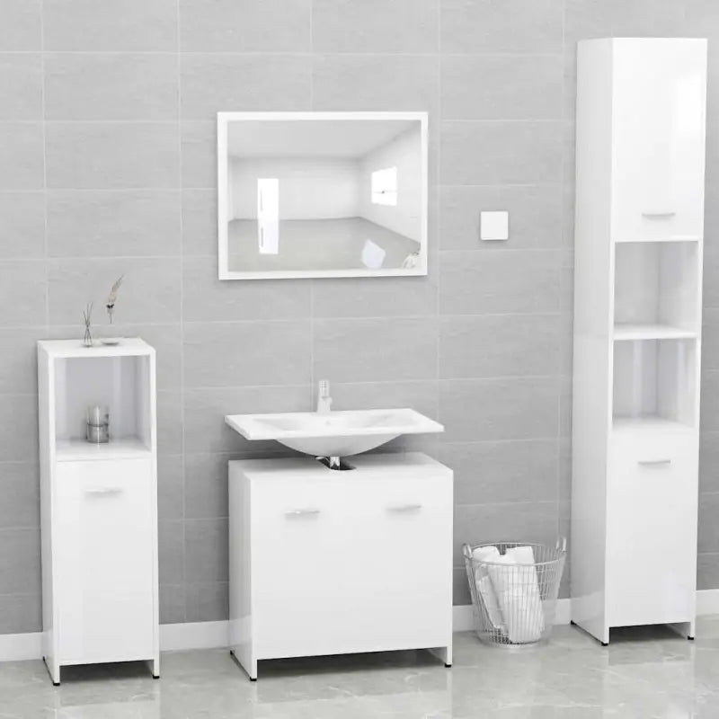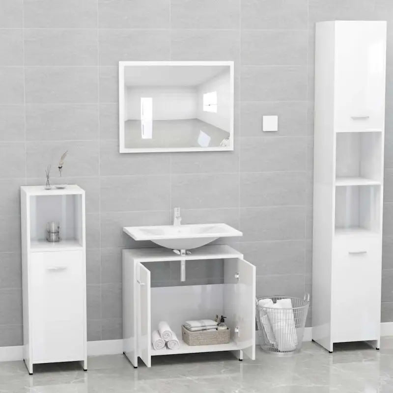 Met deze stijlvolle badkamermeubelset kan je extra opbergruimte in je badkamer creëren. Door de strakke lijnen en het strakke ontwerp past hij perfect in je badkamer.