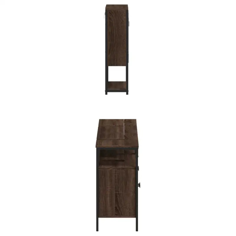 Muur gemonteerde badkamermeubelset van bewerkt hout met veel opbergruimte