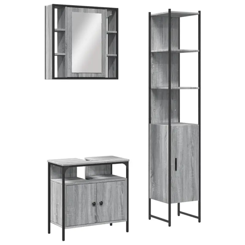 Badkamermeubelset met stevige constructie en verstelbare poten in grijs sonoma