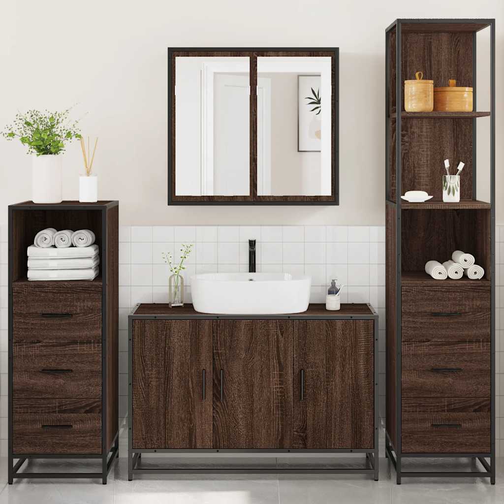 vidaXL 4-delige Badkamermeubelset bewerkt hout oud houtkleurig