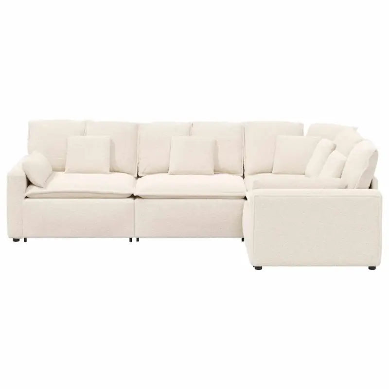 - Modulair ontwerp: De modulaire constructie van de bank zorgt voor een moeiteloze herconfiguratie om in elke kamerindeling te passen. Deze flexibele montage zorgt voor een veelzijdige zitoplossing die perfect past bij uw ruimte en levensstijl.