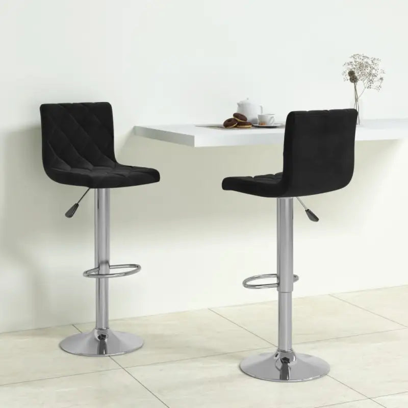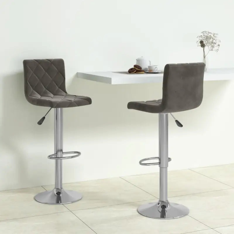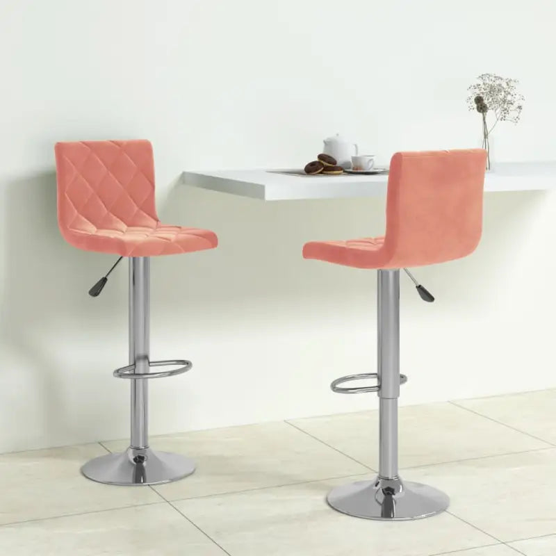 Deze barstoelen zijn bekleed met zacht fluweel voor optimaal zitcomfort. Het verchroomd stalen frame zorgt voor veel stevigheid en stabiliteit, terwijl de ingebouwde voetensteun voor extra zitplezier zorgt. Dankzij het gasveermechanisme kunnen deze draaiende barkrukken in hoogte versteld worden en zijn ze een perfecte aanvulling op elke bar of eethoek. Bovendien kunnen ze 360 graden draaien voor grotere flexibiliteit.