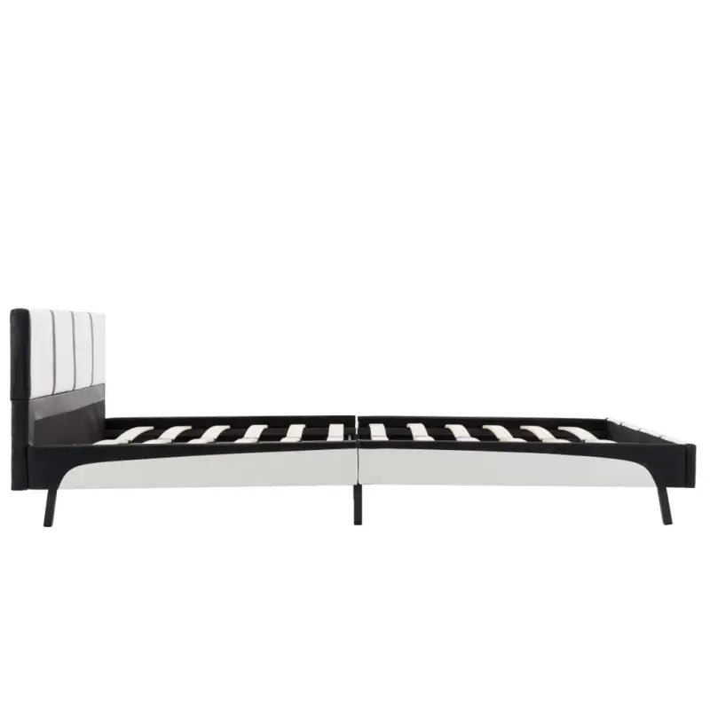 Dit bedframe onderscheidt zich door een ingetogen en toch elegant ontwerp, en voegt een vleugje elegante charme toe aan je slaapkamer. Het is gemaakt van ijzer en multiplex, en is buitengewoon stevig en duurzaam. De gepoedercoat stalen poten maken het bed extra duurzaam. Het bed is bekleed met duurzaam kunstleer waardoor het een uitnodigende uitstraling heeft en gemakkelijk schoon te maken is. Het meegeleverde matras heeft een dikte van ca. 17 cm, is zacht en comfortabel en heeft een gewatteerde, wasbare hoes. Het verdeelt automatisch je gewicht en vermindert stress op de drukpunten van je lichaam. Het matras wordt sterk aanbevolen voor het verzachten van gewrichtspijn, slapeloosheid, rugpijn en nekpijn. De bovenlaag van het matras absorbeert vocht en zorgt voor een goede warmte-isolatie. Bovendien is het matras gemakkelijk schoon te maken dankzij de wasbare hoes, zodat het altijd hygiënisch blijft. Het matras bestaat uit 3 lagen, van boven naar beneden: 1 cm wasbare, gevoerde hoes, 15 cm 30 D schuim, 1 cm wasbare, gevoerde hoes.