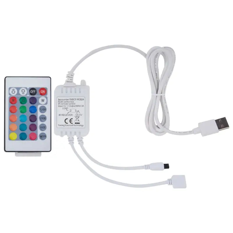 - Afstandsbediening met 24 knoppen voor het aanpassen van sterkte, helderheid en verschillende kleuren