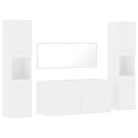 Badkamermeubelset met bewerkt hout en minimalistische spiegel