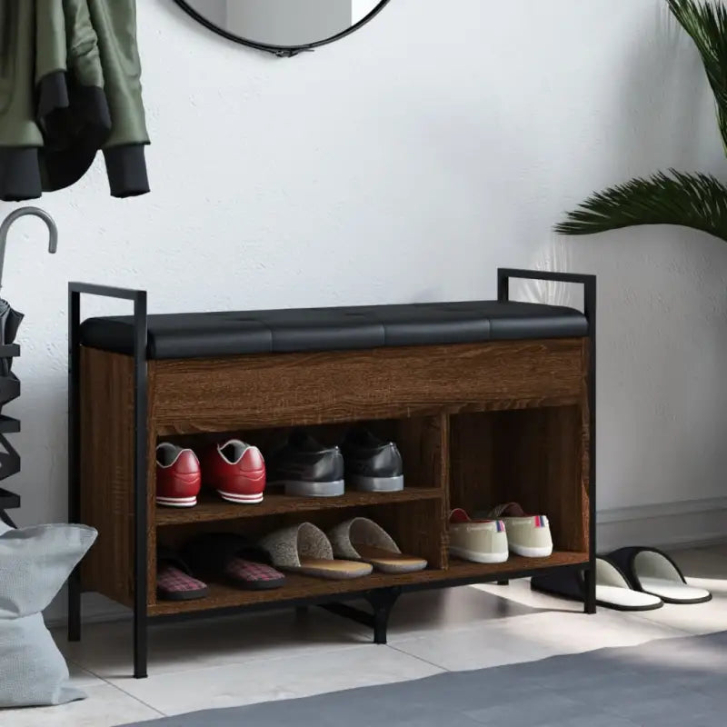 Schoenenbank met bewerkt hout voor overzichtelijke schoenenopslag