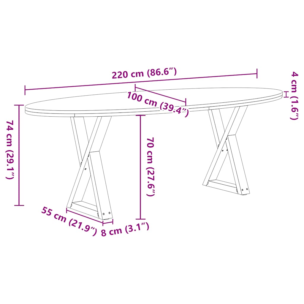 vidaXL Eettafel 240x100x74 cm ovaal massief eikenhout lichtbruin