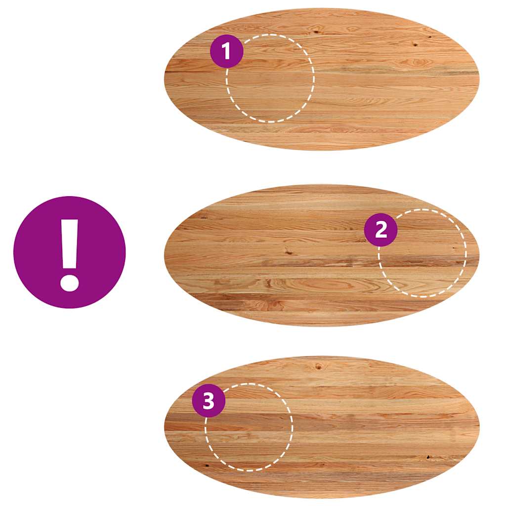 - Noesten en kleine gebreken zijn opgevuld met zwart vulmateriaal om een mooi en glad tafeloppervlak te geven. Raadpleeg de afbeeldingen voor voorbeelden.