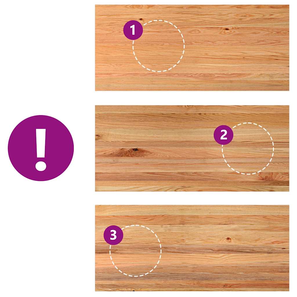 - Noesten en kleine gebreken zijn opgevuld met zwart vulmateriaal om een mooi en glad tafeloppervlak te geven. Raadpleeg de afbeeldingen voor voorbeelden.