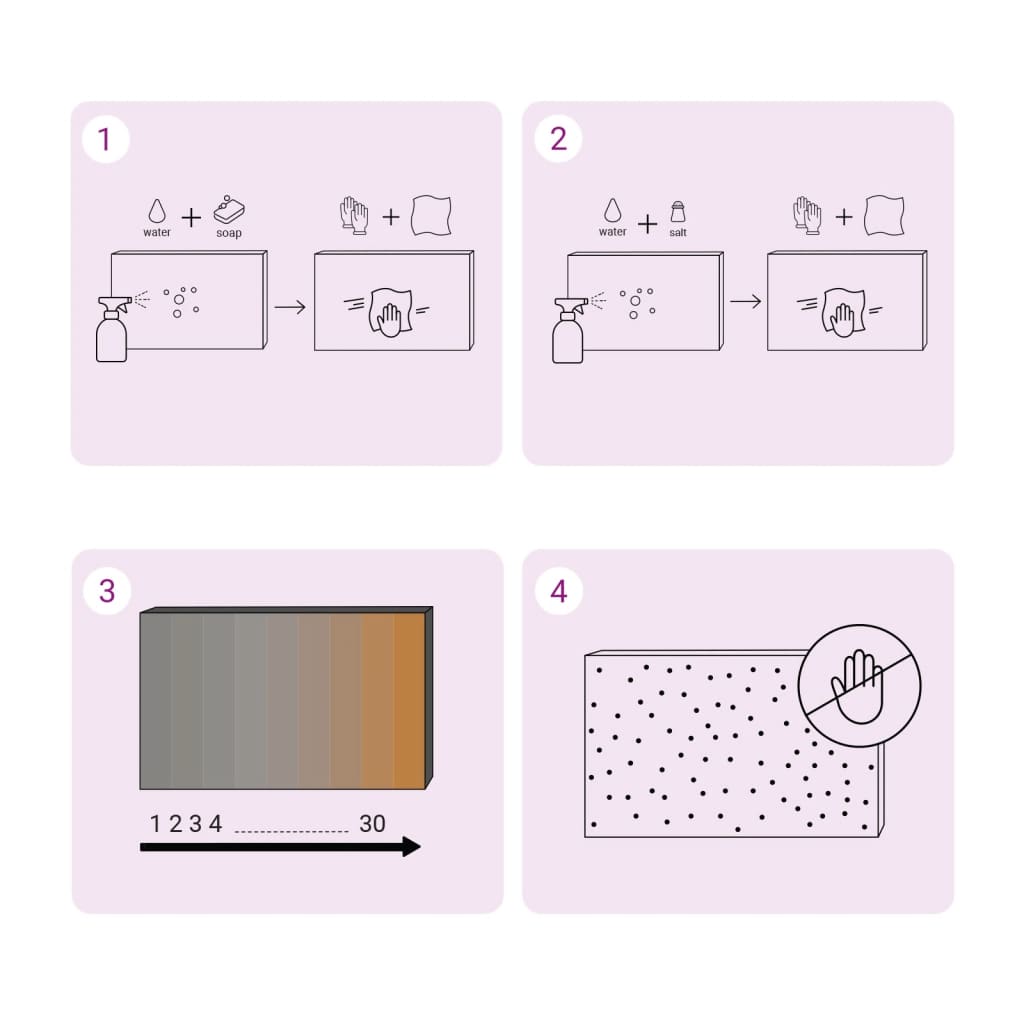 - Het product is bij ontvangst nog niet verroest en heeft een normale metaalkleur. Na verloop van tijd ontstaat er roest. Je kunt het roestproces versnellen door het metaal te besproeien met zeepwater en zout water. Vermijd contact met de ontwikkelende roestlaag, om je kleding te beschermen tegen vlekken.