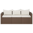 vidaXL Tuinbank 3-zits met kussens poly rattan bruin