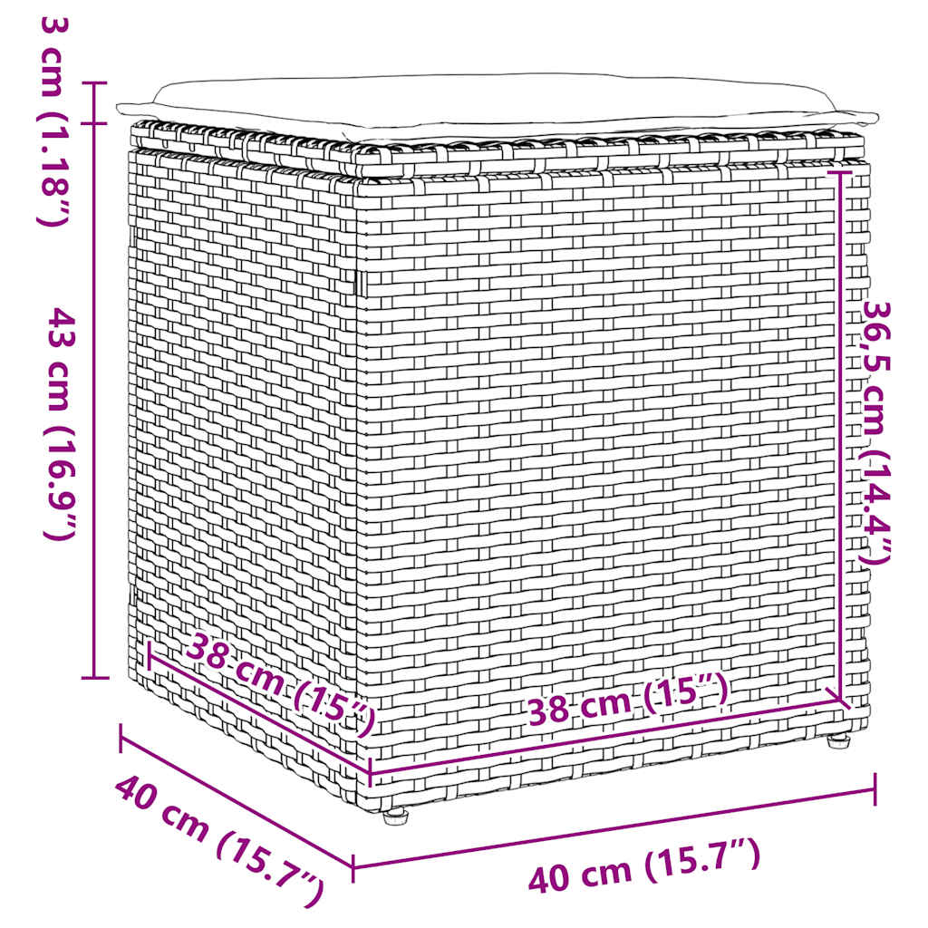 vidaXL Tuinkrukken met kussens 2 st 40x40x43 cm poly rattan bruin