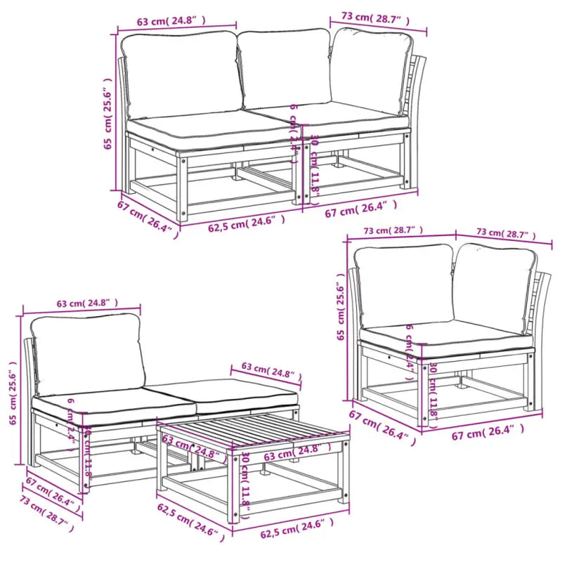 - Gelat ontwerp: het lattenontwerp van de houten loungeset voorkomt waterophoping, waardoor de zitting droog blijft en rotting wordt voorkomen.