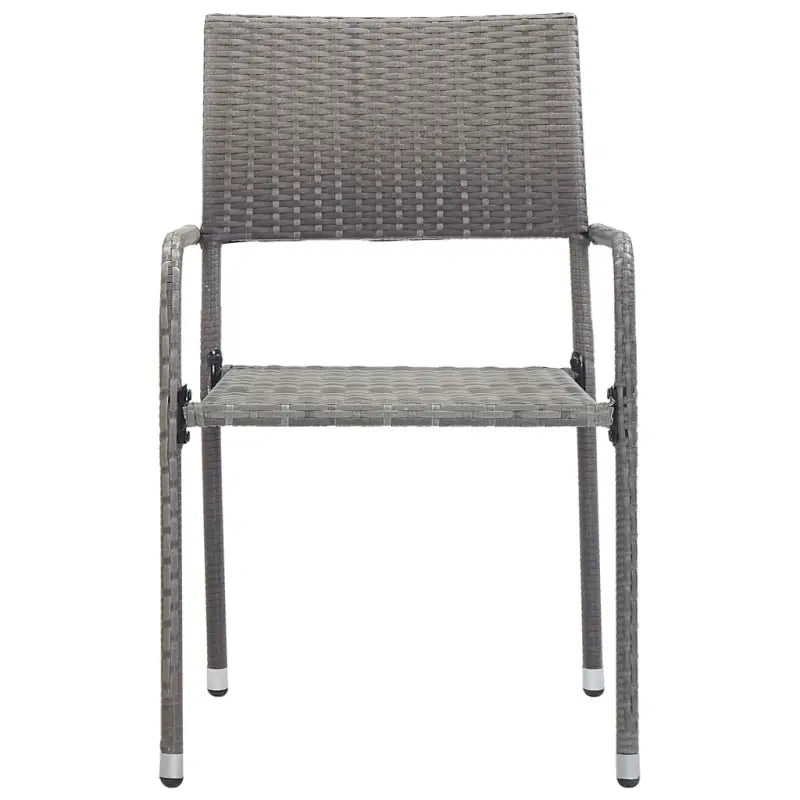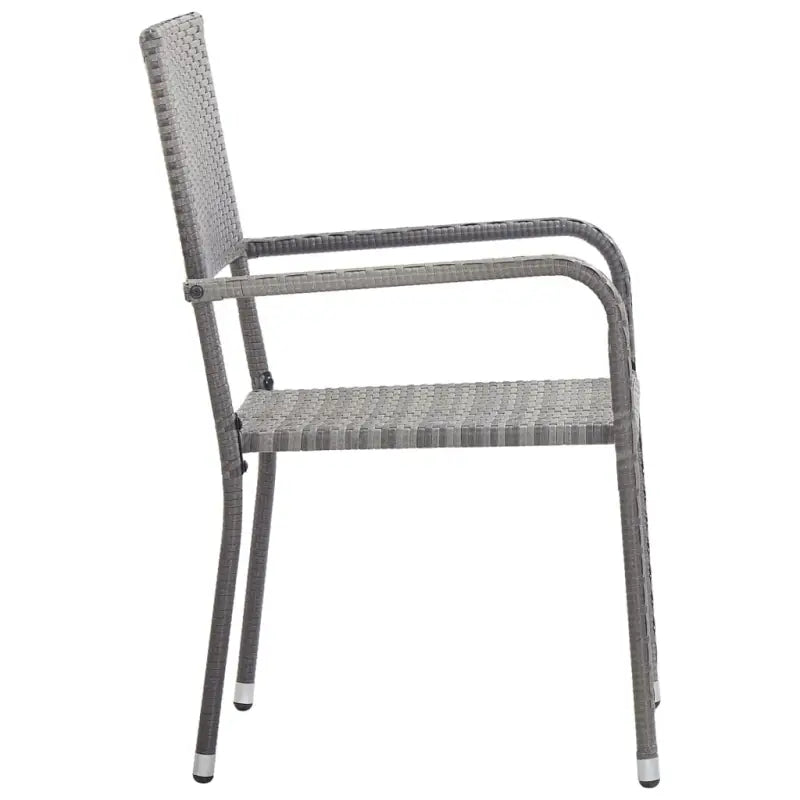 De eettafel is gemaakt van massief acaciahout en duurzaam staal, waardoor hij stevig en stabiel is. Het geoliede oppervlak maakt het meubel geschikt voor buitengebruik. De eetstoelen hebben een stalen frame bedekt met weerbestendig PE-rattan, waardoor ze stevig en eenvoudig te reinigen zijn. Deze tuinstoelen kunnen gestapeld worden om ruimte te besparen wanneer ze niet gebruikt worden.