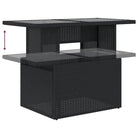 - Verstelbaar tafelblad: het tafelblad kan worden opgetild om de tafel hoger te maken, waardoor de tuintafel verandert van salontafel in eettafel. Hij is perfect om gasten te ontvangen of buiten te eten.