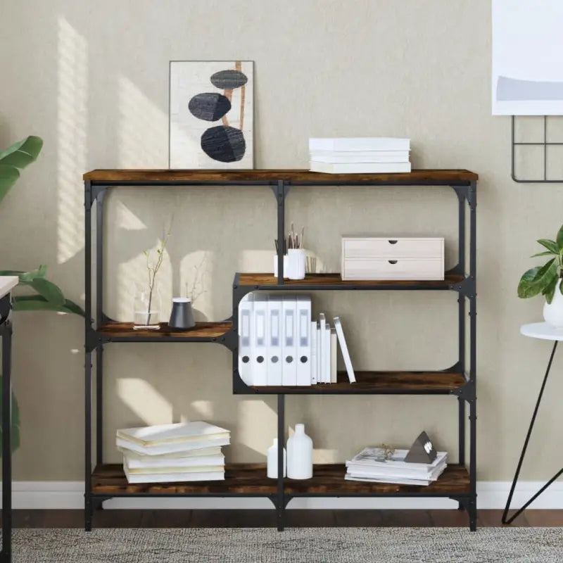 Bijzettafel met bewerkt hout en metalen frame voor een stijlvolle uitstraling