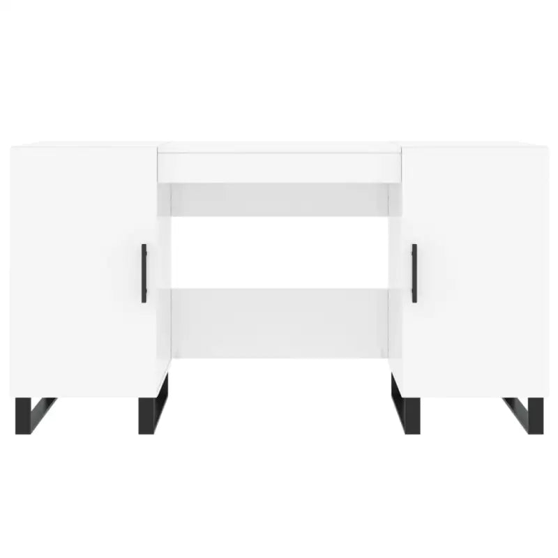Bureau van bewerkt hout met hoogglans wit voor een elegante werkomgeving