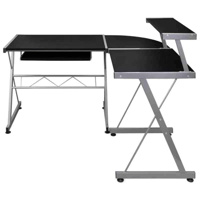 - Praktisch hoekbureau: dit L-vormige bureau biedt een ruime werkplek en bevat een uitschuifbaar toetsenbordblad om je bureau er netter en schoner uit te laten zien.