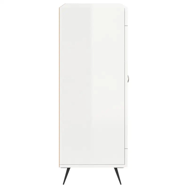 Hoogglans wit dressoir met glas en bewerkt hout voor een tijdloze uitstraling