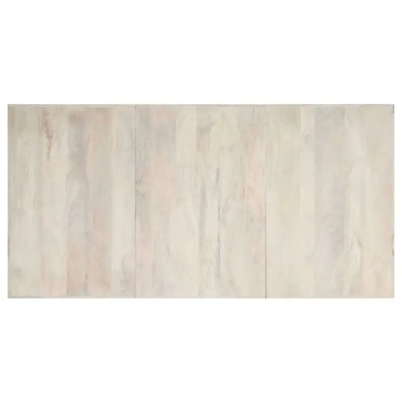Deze eetkamertafel is gemaakt van massief mangohout. Mangohout is een dicht en robuust hardhout dat prachtige bruine en gouden strepen en contouren heeft. De eettafel is volledig met de hand gemaakt en elke stap van het proces wordt met de grootste zorg uitgevoerd, zo ook de witgebleekte afwerking. De stalen poten maken het moderne uiterlijk compleet, samen met het stalen kruisframe dat bijdraagt aan de stevige constructie.