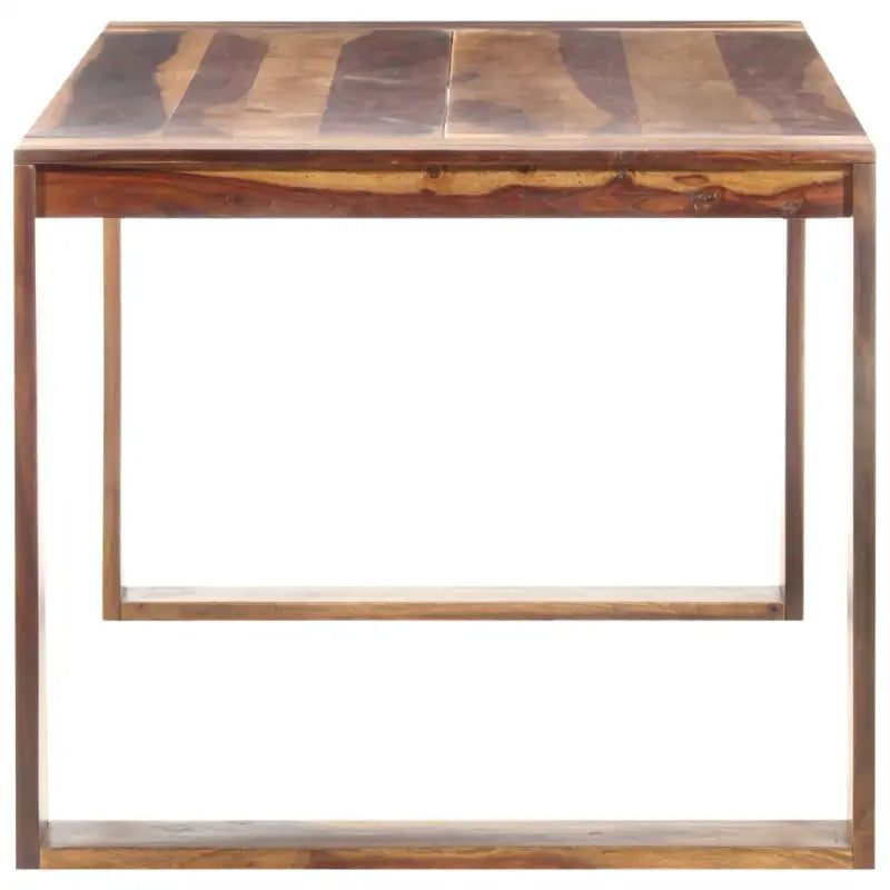 Onze houten eettafel is gemaakt van massief hout met een lichte walnoothoutenafwerking, geeft een vleugje rustieke charme aan je interieur.