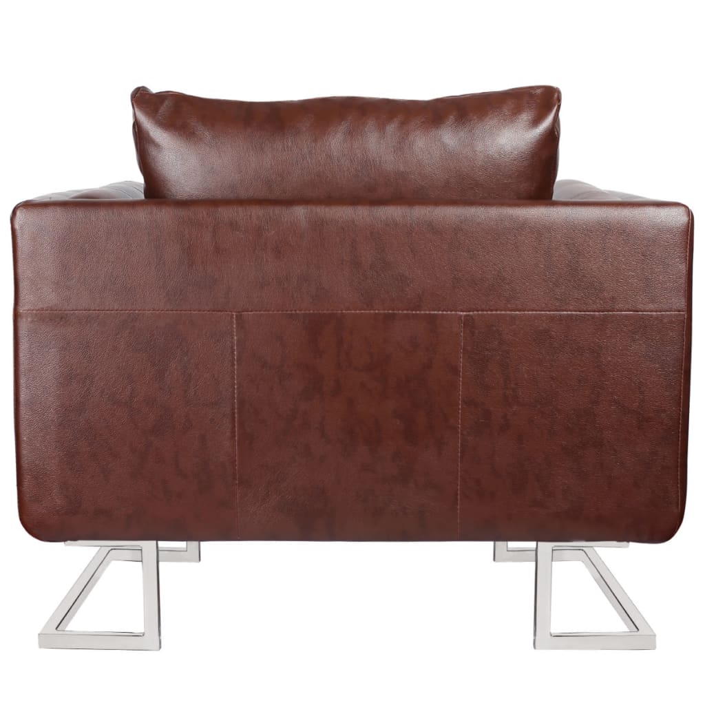 vidaXL Fauteuil met verchroomde poten kubus kunstleer bruin