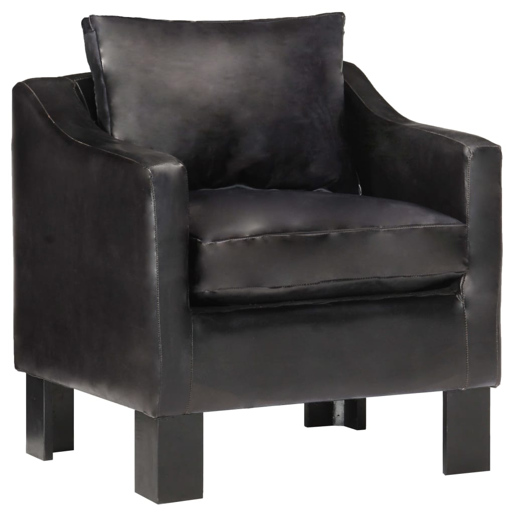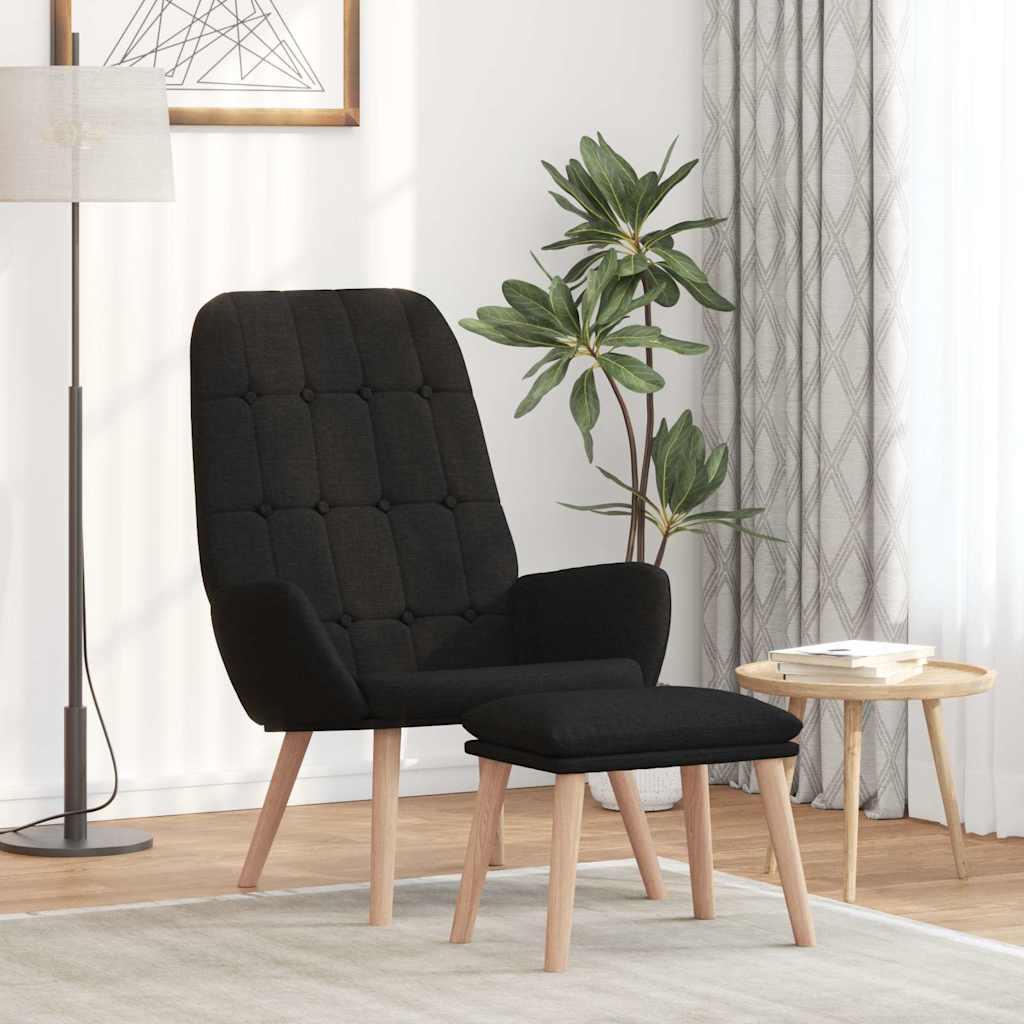 vidaXL Relaxfauteuil met voetenbankje echt leer zwart