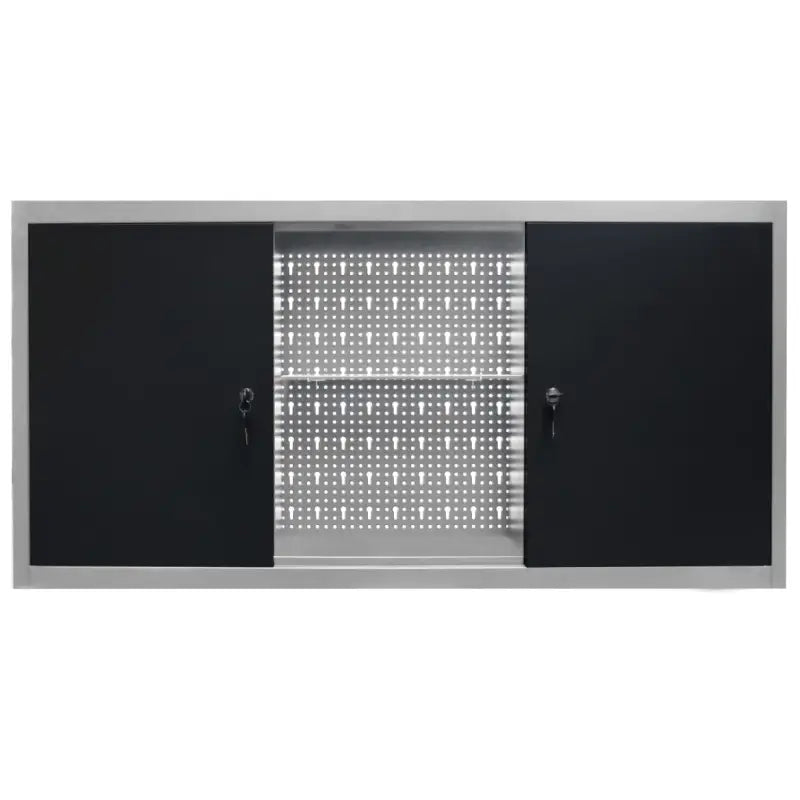 Deze gereedschapsopberger is voorzien van drie in hoogte verstelbare schappen en een geperforeerde plaat met Euro-gaten die kan worden gebruikt voor het ophangen van verschillende soorten gereedschappen, zoals sleutels, tangen, hamers, enz. De gereedschapskast is uitgerust met 2 afsluitbare deuren (inclusief 2 sleutels voor elke deur) en biedt dus extra veiligheid. De kast is gemaakt van metaal met een extra sterke, krasbestendige coating, waardoor hij duurzaam en gemakkelijk schoon te maken is. Dit product moet gemonteerd worden.