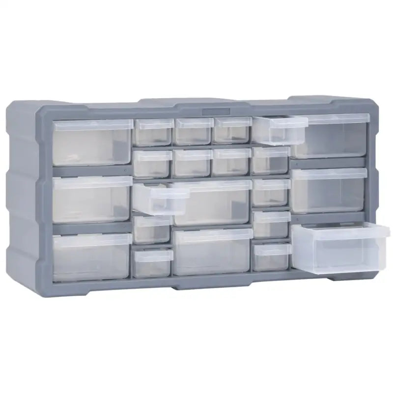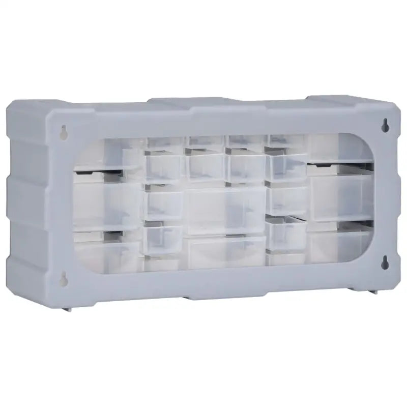 Deze opberger heeft 14 kleine lades en 8 medium lades om aan verschillende behoeften te voldoen. Hij houdt je handgereedschappen en accessoires, zoals bevestigingsmiddelen, georganiseerd en binnen handbereik. De gereedschapsorganiser is gemaakt van slagvast kunststof, dat zowel duurzaam als stabiel is. De lades zijn gemaakt van doorzichtig kunststof zodat je de inhoud snel kunt zien. Hij is ideaal voor het opbergen van moeren, bouten, schroeven, spijkers, algemene bevestigingsmiddelen en onderdelen.