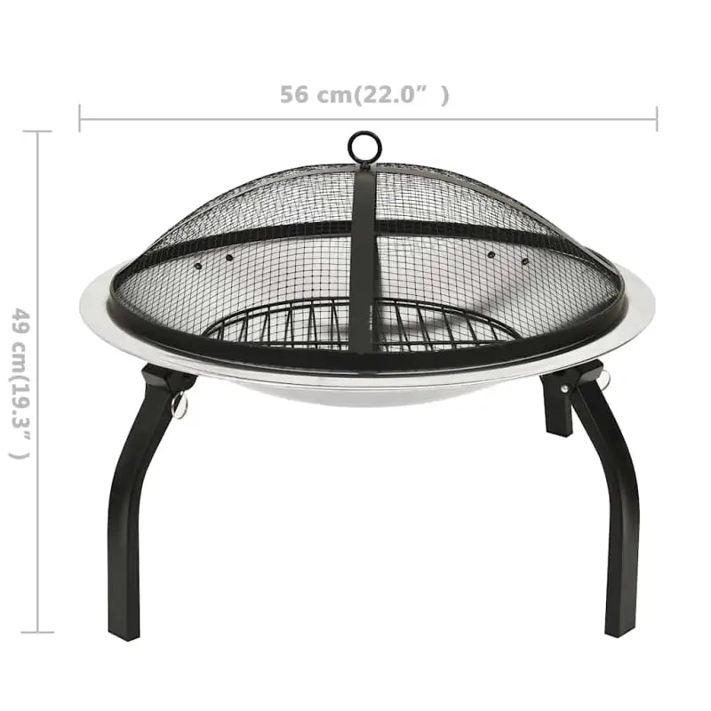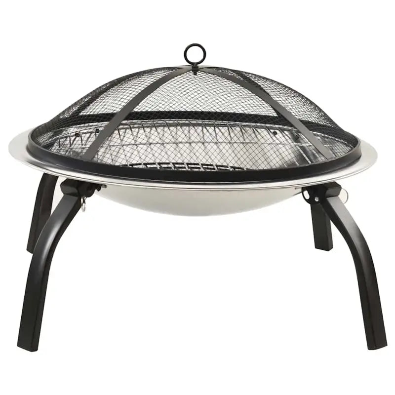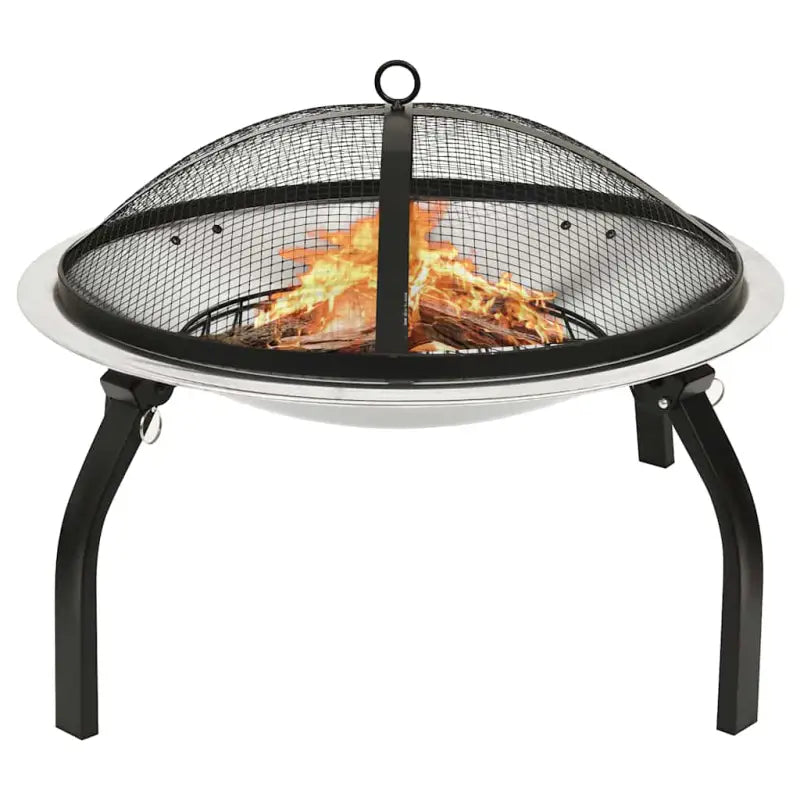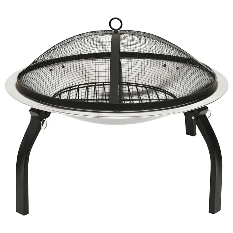 De roestvrijstalen vuurschaal kan uitstekend warmte opnemen en afgeven. De grote schaal zorgt voor een groot vuur waar je samen met je gezin van kunt genieten. Het gaas biedt veel veiligheid: je kan het vuur zien, maar wordt beschermd tegen vonken en sintels. Het deksel heeft tevens een handige ring zodat je hem gemakkelijk kunt dragen. De pook kan worden gebruikt om het deksel te verwijderen en om het hout te herschikken. Dankzij het inbegrepen rooster kan je zelfs op de schaal barbecueën.. De poten kunnen worden ingeklapt voor eenvoudig transport.