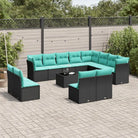 Zwarte loungeset van poly rattan met gepoedercoat staal en ruime afmetingen