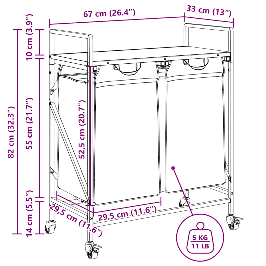 vidaXL Wasmand 2 vakken met plank zwart eikenkleurig