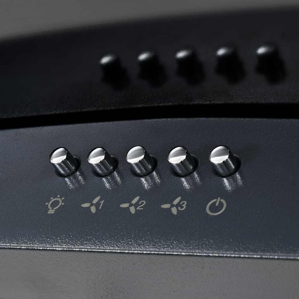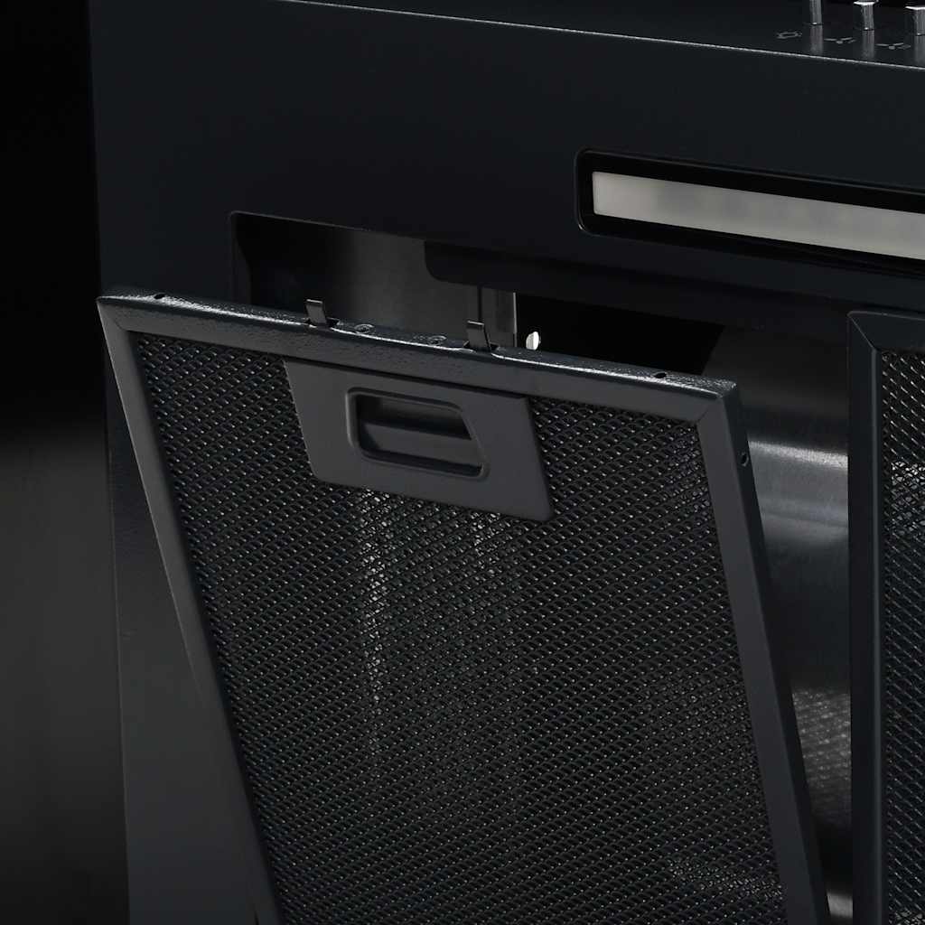 Geluidsarme wandafzuigkap met wasbaar vetfilter en gehard glas