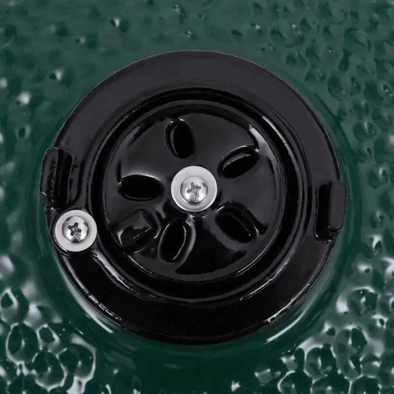 De keramische barbecue heeft een zeer stevig scharnierend deksel met ventilatieopening en een ingebouwde thermometer. Dankzij de gelaagde ventilatieopening kan je zowel de luchtstroom als de temperatuur makkelijk regelen. Het hoogwaardige keramiek met kuiltjes-structuur en geglazuurde afwerking is duurzaam en esthetisch aantrekkelijk. De grill zorgt voor een uniek kookproces dat smaak aan het eten toevoegt en het tegelijkertijd uitzonderlijk mals houdt! De gepoedercoat stalen poten voegen extra stabiliteit toe aan de grill.