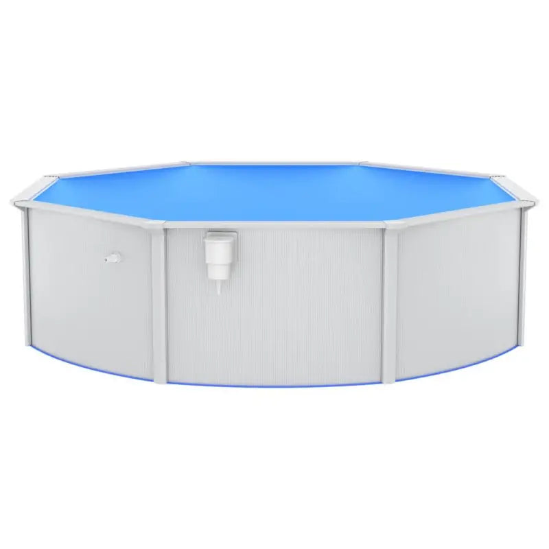 Het zwembad is voorzien van stalen wanden en is bekleed met slijtvaste, winterbestendige PVC-materialen die het zwembad sterk en duurzaam maken. Bovendien voegen het witgekleurde frame en de blauwe voering een vleugje schoonheid toe aan elke tuin. Het zwembad is snel en eenvoudig op te zetten. De inbegrepen skimmer biedt superieure skimming die viezigheid efficiënt en volledig verwijdert. De 4-traps veiligheidsladder helpt zwemmers om veilig en eenvoudig in en uit het zwembad te stappen.