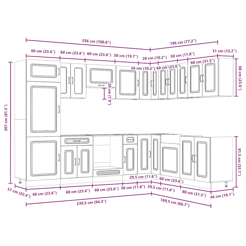 vidaXL 14-delige Keukenkastenset Kalmar bewerkt hout gerookt eiken