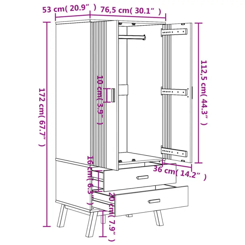 Deze klassieke houten kledingkast met Scandinavisch design biedt veel opbergruimte en houdt je kleding en accessoires netjes geordend.