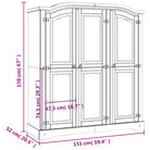 vidaXL Kledingkast 3 deuren Mexicaans grenenhout Corona-stijl grijs