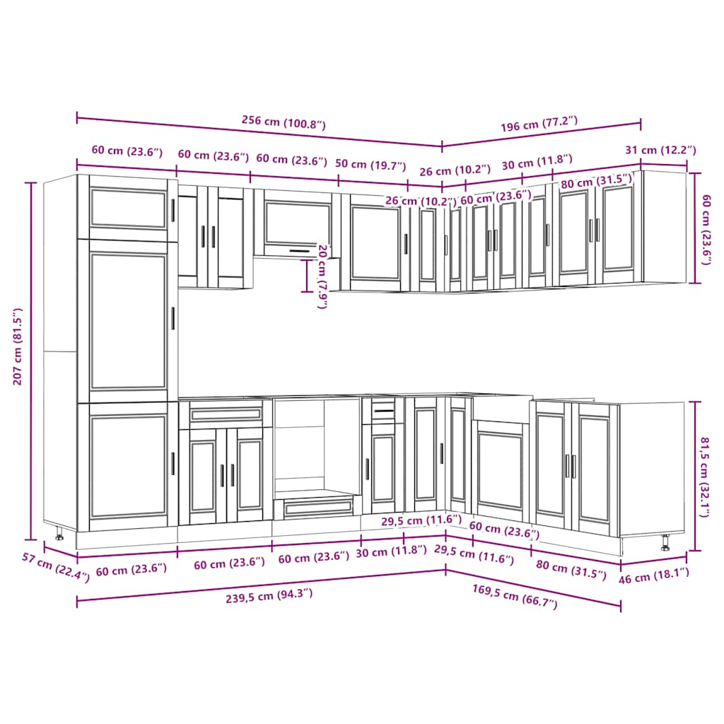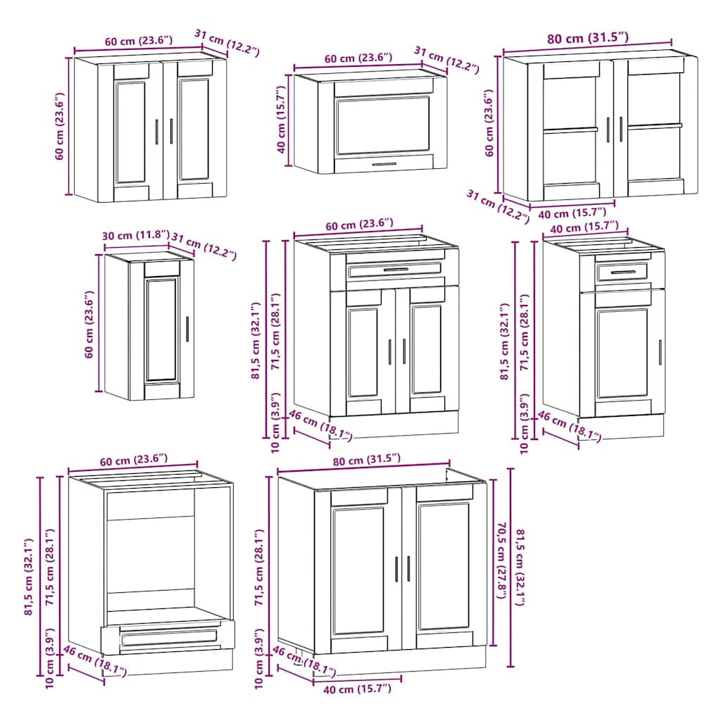 Keukenkasten set van bewerkt hout voor een overzichtelijke keuken