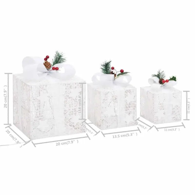 Deze verlichte geschenkdozen zijn gemaakt van sterke en glanzende stof en zijn uiterst duurzaam. Daarnaast zijn de geschenkdozen voorzien van 60 LED-lampjes, die energiezuinig zijn en lang meegaan. De decoratie is ontworpen met 8 verschillende lichteffecten, waaronder: langzaam gloeien, twinkelen/flitsen, in golven, jagend/stromend water, sequentieel, constant aan en langzaam vervagend en ook een combinatie van alle effecten. Hierdoor lichten de cadeaudozen prachtig op en creëren ze een magische kerstsfeer! Dankzij het stapelbare ontwerp is de decoratie ook makkelijk en handig op te bergen. Verder is de mooie strik afneembaar.