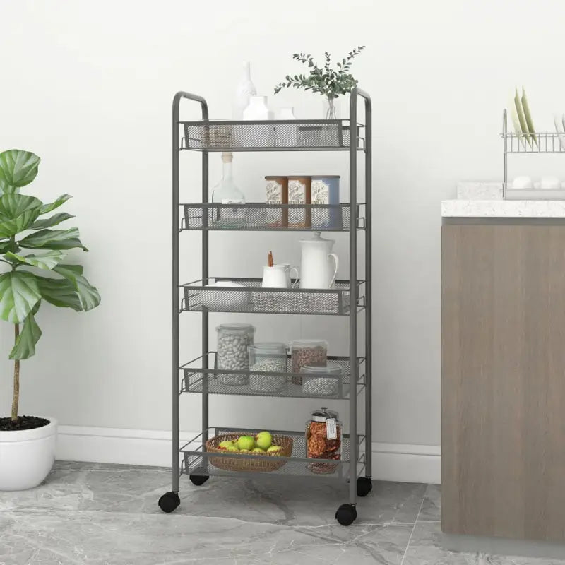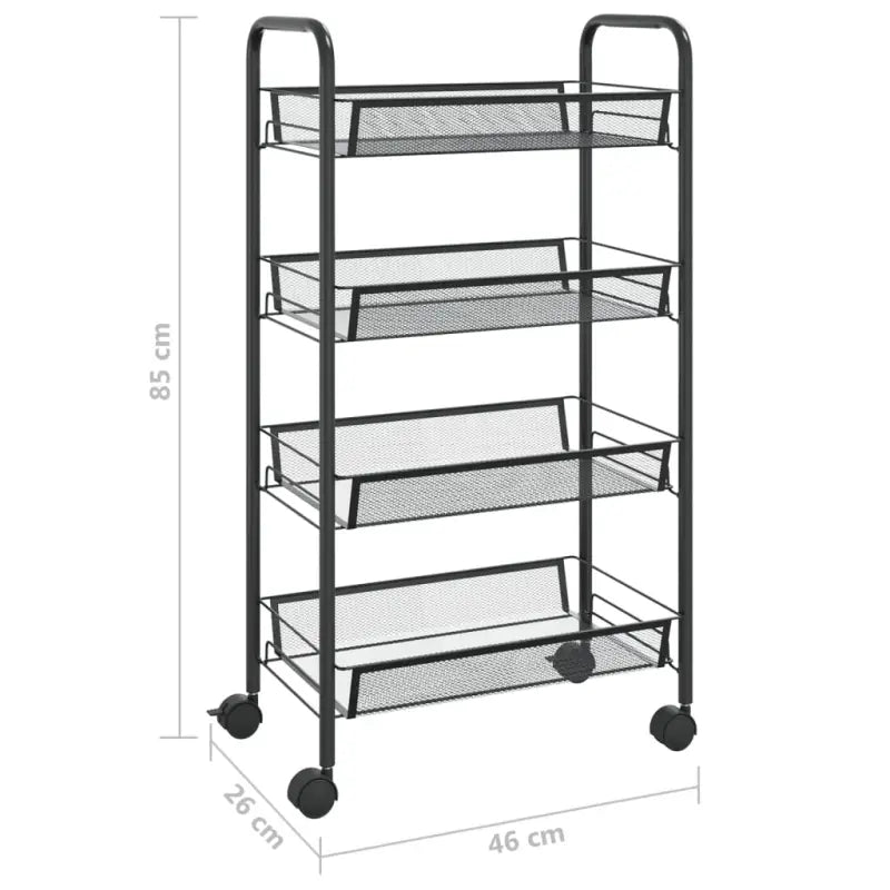 Deze huishoudelijke trolley heeft een ijzeren constructie, waardoor hij stevig en duurzaam is. Ook heeft de ruimtebesparende kar 4 wielen, waarvan 2 met remmen voor eenvoudig verplaatsen en vastzetten. De mesh manden zijn sterk en uitneembaar, waardoor ze extra opbergruimte bieden en de ruimte optimaal benutten. Daarnaast is de trolley ideaal voor het opbergen van speelgoed, sleutels, etenswaren, enz.