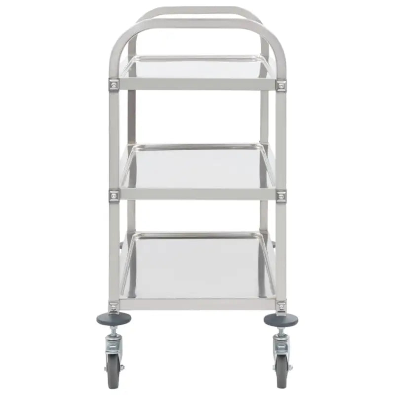 Deze 3-laagse trolley is handig in de keuken en op feestjes vanwege de robuuste constructie. Hij kan worden gebruikt om eenvoudig eten en drinken te serveren of de afwas naar de keuken te vervoeren.